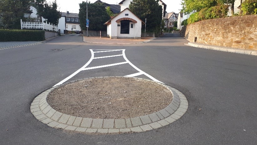 Ich möchte hiermit darauf aufmerksam machen, dass seit ein paar Tagen auf dem Platz neben der Kirche, wo die Straßen Entenpfuhl und Napoleonstraße in die Dorfstraße einmünden, zwischen der Baumscheibe und dem Schildjes-Boar-Häuschen (Brunnen) eine Sperrfläche eingezeichnet ist. Sie gehört zu den in der Straßenverkehrsordnung geregelten Zeichen und bezweckt, die Verkehrssicherheit für die Fußgänger und die Fahrzeugführer zu erhöhen. Da es verboten ist, mit Fahrzeugen über sie zu fahren, ist es nunmehr nicht mehr möglich, den Platz quer zu überfahren, um von einer der Nebenstraßen in die Dorfstraße zu fahren, oder umgekehrt. Für den Verkehr, der zwischen Napoleonstraße und Entenpfuhl wechseln möchte, wurde jedoch oberhalb der Sperrmarkierung eine Querverbindung freigelassen. Die Erleichterung, die diese Sperrfläche für die Fußgänger mit sich bringt, besteht darin, dass sie diese als Querungshilfe bei der Überquerung des Platzes benutzen können.