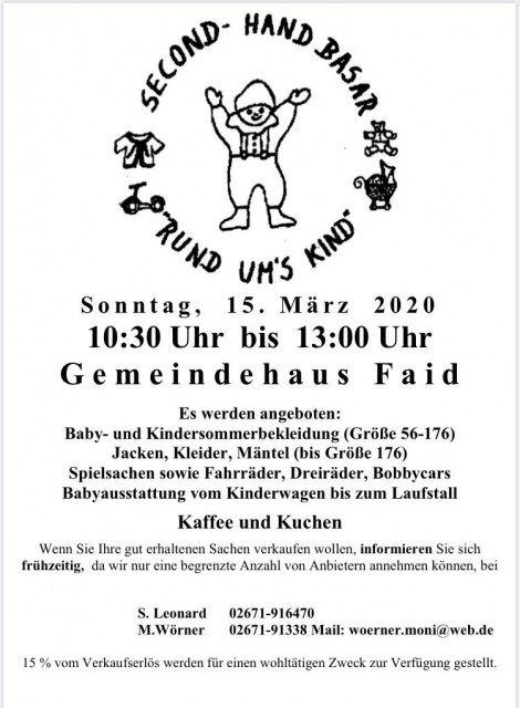 Der Basar muss aufgrund der aktuellen Coronalage abgesagt werden. Wir bitten um Euer Verständnis