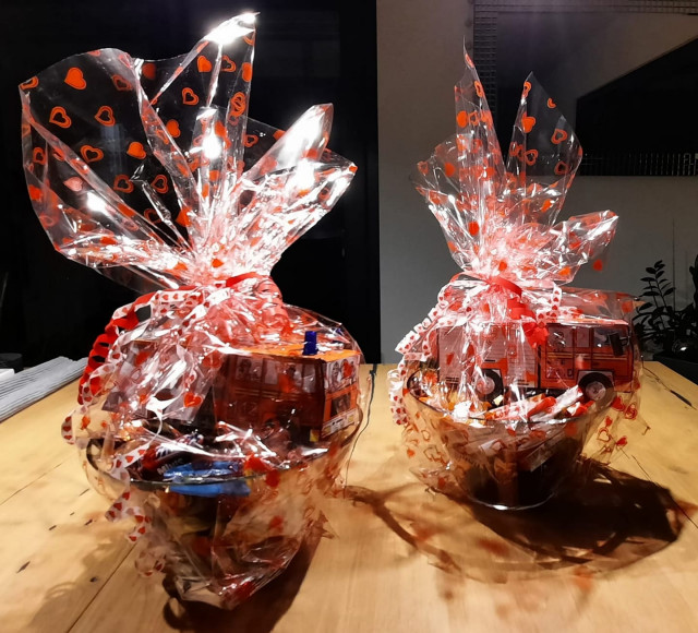 Zwei Feuerwehrautos von unserer Dorfolympiade aus Aufgabe Nr. 18 mussten sofort in den Einsatz! Im Namen der Ortsgemeinde Faid und den Teilnehmern der Dorfolympiade überbrachten sie herzliche Grüsse und eine große Schale mit vielen süßen Leckereien an die Bewohner der Gruppe vom Kloster Ebernach und des Wohnheims der Lebenshilfe in Faid. Ich hoffe, wir haben allen damit den Corona-Alltag ein bisschen versüßt!