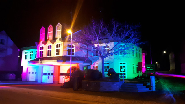 vergangenen Sonntag wäre unser traditioneller Karnevalsumzug gewesen und scheinbar weiß der Wettergott nicht, dass er wegen Corona ausfallen musste, denn das Wetter war bei strahlendem Sonnenschein und Temperaturen um den Gefrierpunkt ideal dafür. Da wir schon keinen Umzug hatten, hat Herr Florian Schneiders am Abend das Dorfgemeinschaftshaus in wunderschönen Farben angestrahlt. Es war ein wirklicher Hingucker, wie Sie auf dem Bild erkennen können. Dir lieber Florian Schneiders ein herzliches Dankeschön im Namen der Ortsgemeinde Faid.