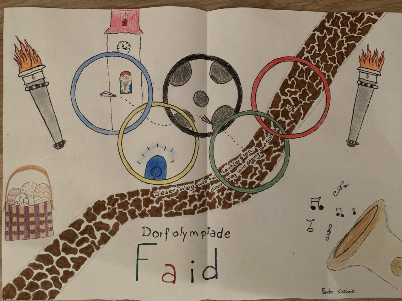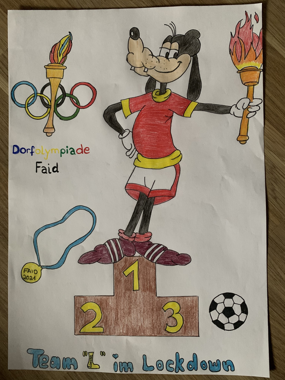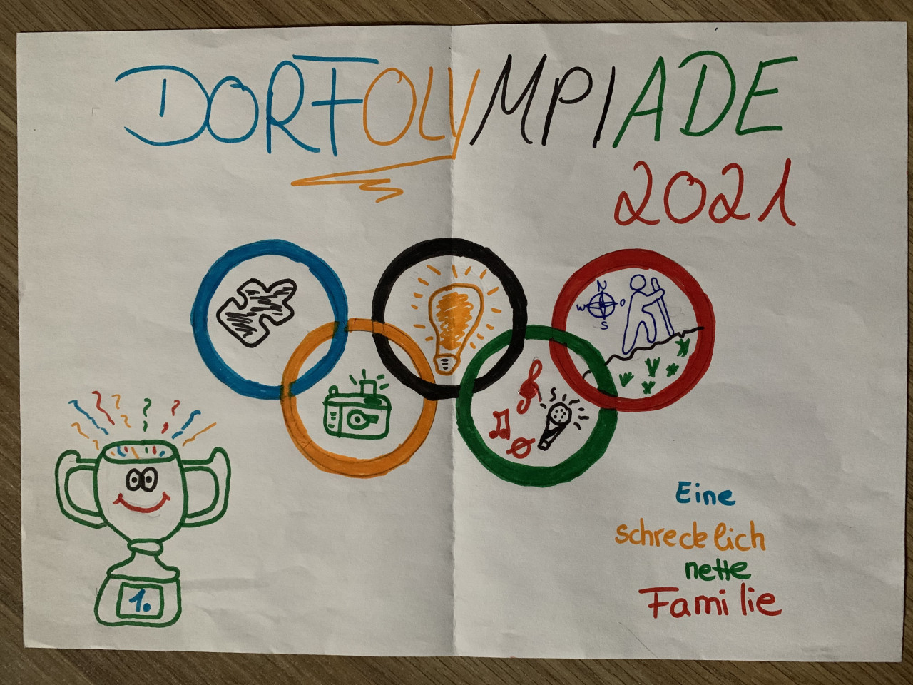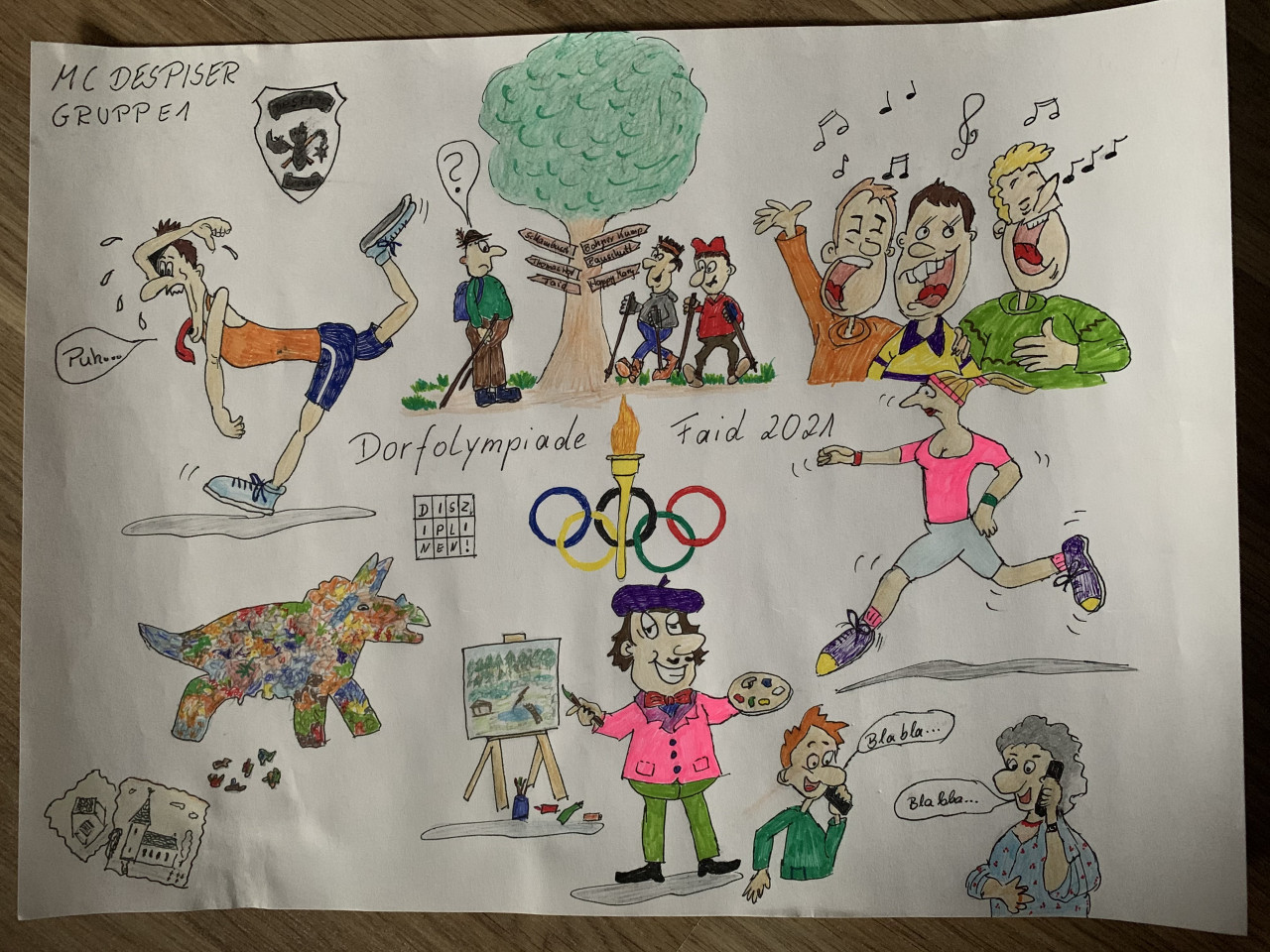 Heute mussten die Teams das erste mal ihre Kreativität mit künstlerischen Fingerfertigkeiten vereinen. Bunte Bilder zum Thema Dorfolympiade galt es zu gestalten. Der Fantasie freien Lauf lassen, etwas, was keinem der Olympioniken schwer viel. Ich denke, heute sprechen die Ergebnisse einmal mehr für sich. Wahre Kunstwerke. Und damit diese für die Ewigkeit erhalten bleiben, gibt es seitens des Komitees bereits Ideen, die Bilder entsprechend zu präsentieren. Aber jetzt schaut sie euch erst einmal an.