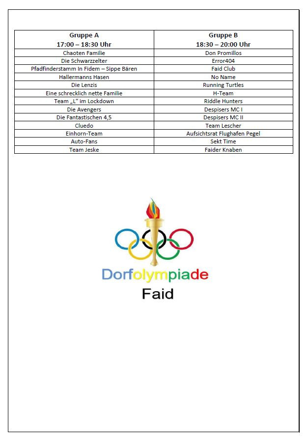Endspurt heißt es in unserer Olympiade. Noch fünf Aufgaben haben die Teams zu absolvieren. Nochmal alles geben und auf der Zielgeraden versuchen, Meter gutzumachen. Das Ganze selbstverständlich mit dem dazugehörigen Spaß. Die Stimmung ist gut dieser Tage, das Wetter passt und wie ich es mitbekommen habe, sind bei allen Teams noch alle Olympioniken an Bord. Beste Voraussetzungen für den interessierten Beobachter ein spannendes Finale zu erleben. Ich für meinen Teil freue mich bereits darauf und werde weiter für euch berichten. Allen Teams wünsche ich viel Freude, Glück und die nötige Ausdauer. Gebt alles!