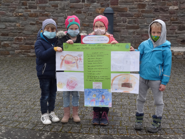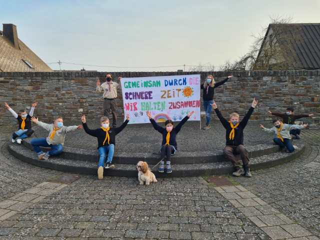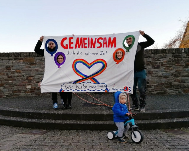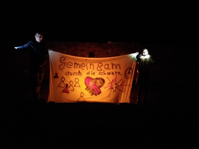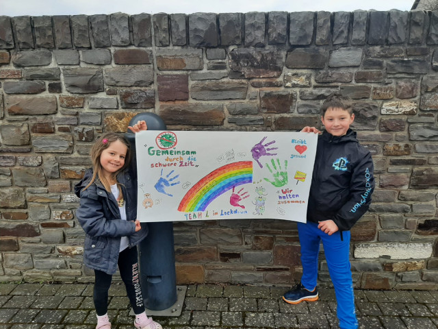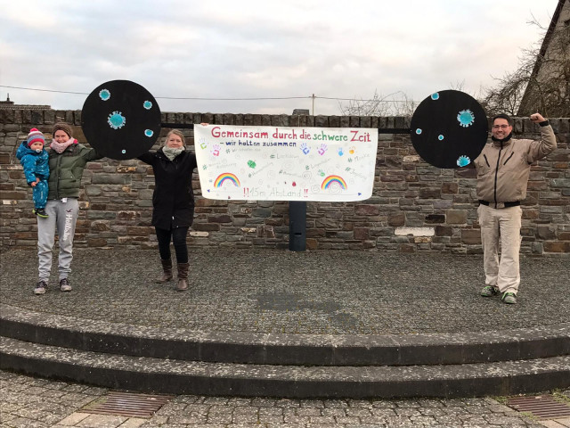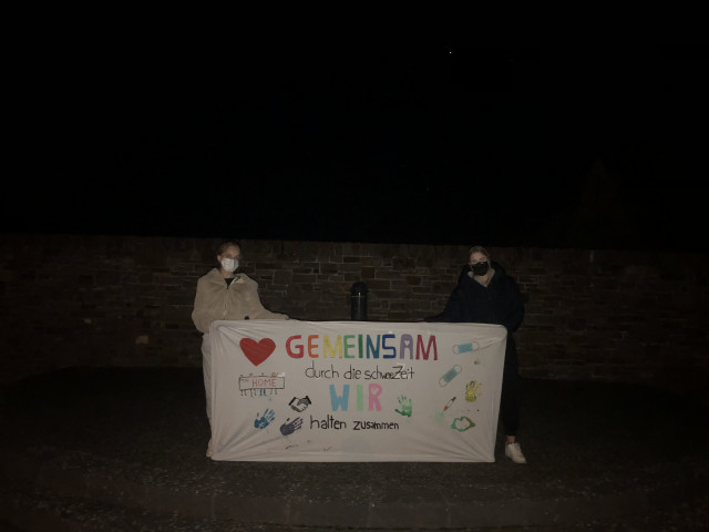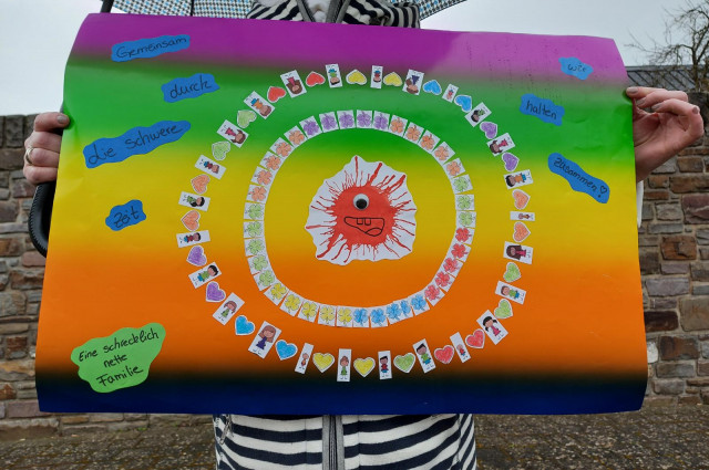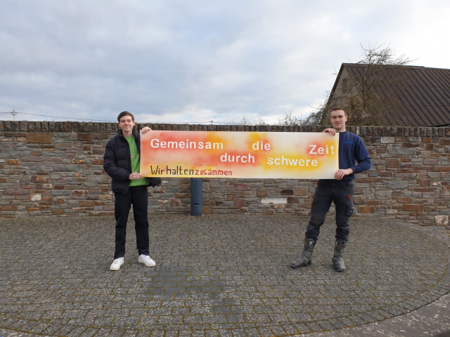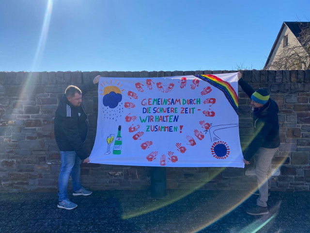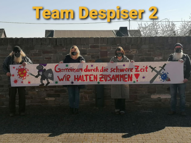 „Gemeinsam durch die schwere Zeit – wir halten zusammen", so lautete das Motto von Aufgabe 2. Von den Teams umgesetzt in kreativen Plakaten und zur Schau gestellt auf der Empore des Dorfplatzes. Auch hier waren alle wieder äußerst einfallsreich. Ich bin froh, nicht mit der Jury die hier zu erlangenden Zusatzpunkte vergeben zu müssen. Von mir gibt's ein klares "WOW", was meint ihr?